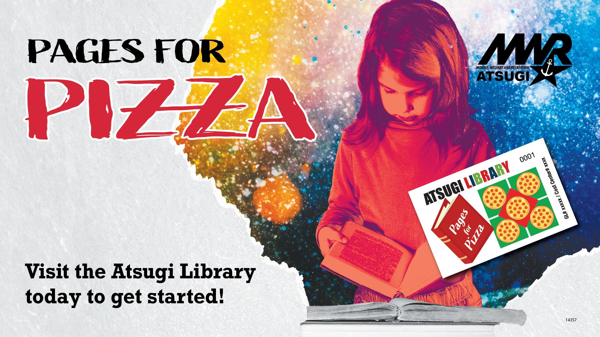 - Pick up a "Pages for Pizza" bookmark from Atsugi Library.